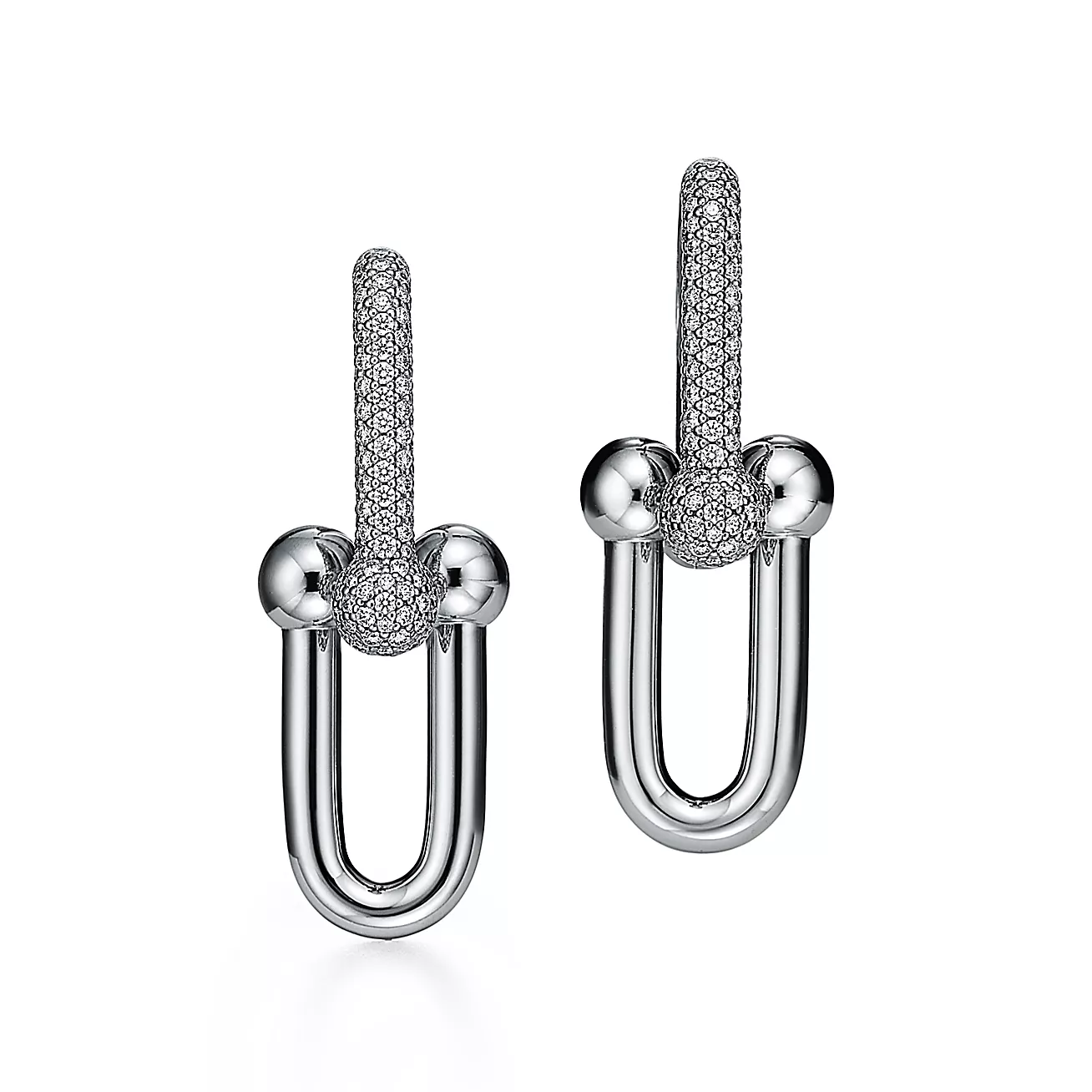 Tiffany HardWear Large Link Earrings in White Gold with Pavé Diamonds (1:1 replica)